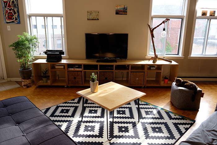 A friend grew tired of his Ikea furniture and wanted a new TV stand and coffee table for his living room. We designed and built quite a nice upgrade!