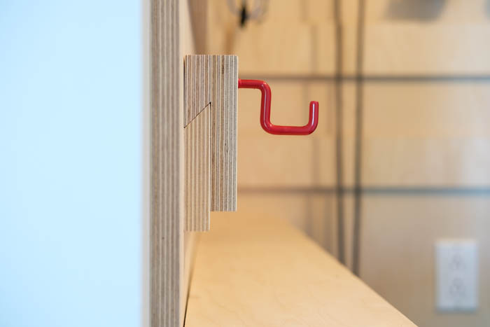 It's not everyday that I'm asked to build a wooden wall with a built-in foldable desk and a child size door to connect with the parents' bedroom. I love the creativity behind this project!